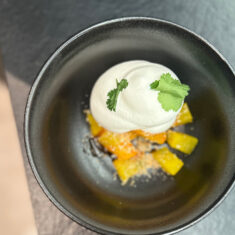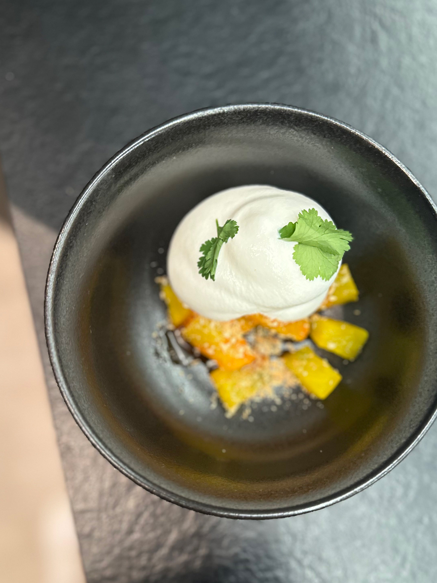 Pečená křepelka, omáčka z Ryzlinku, mrkvové pyré
