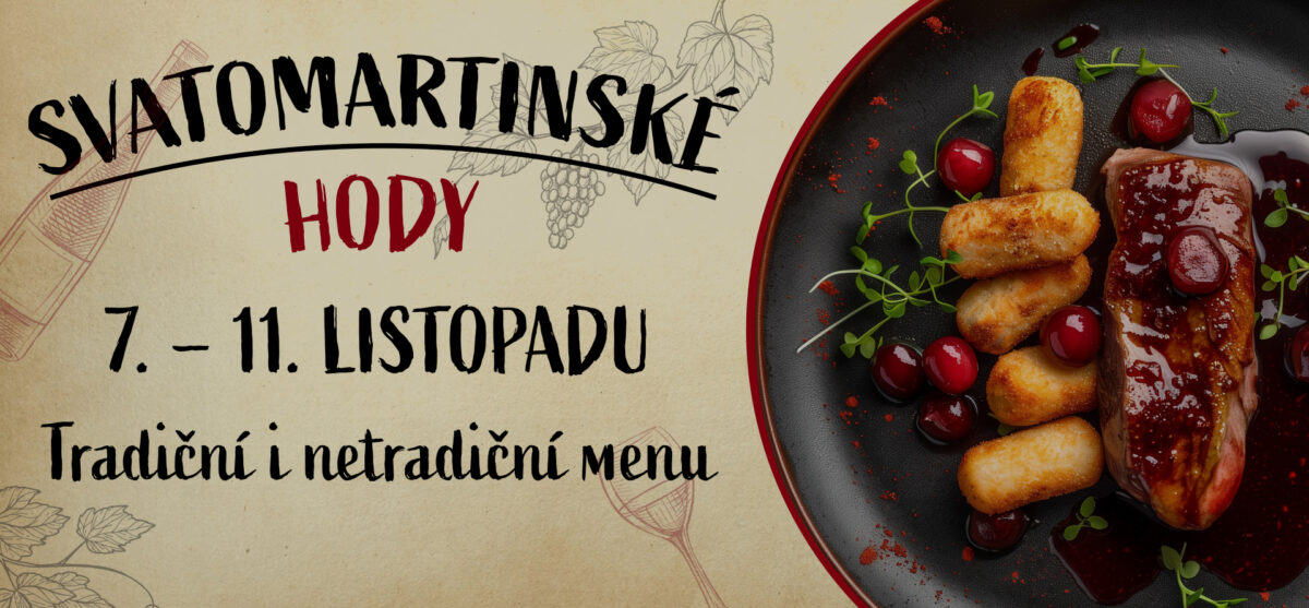 Od 7. do 11. listopadu si můžete vychutnat speciální Svatomartinské menu, ve kterém se tradice snoubí s jemností chutí, vůní a poctivými surovinami.