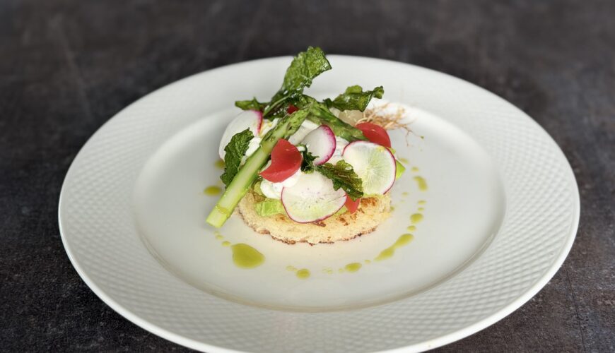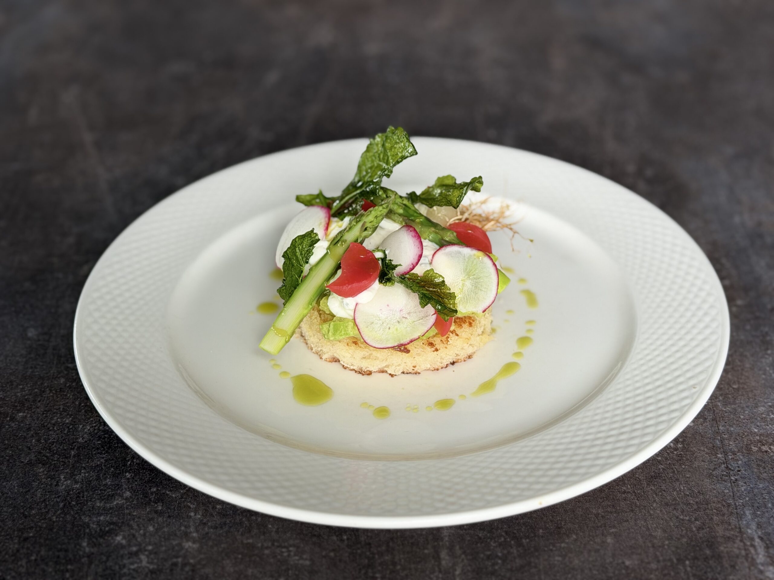 bylinky, ředkvičky a chřest (1, 3, 7)
